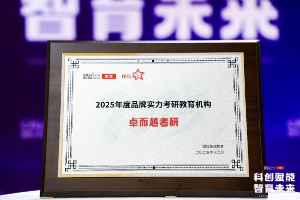 近日,由中央级重点外宣平台国际在线旗下 “国际在线教育” 主办的 “2025 教育大会” 在北京落幕,本届大会以 “科创赋能 智育未来” 为主题,汇聚了教育行业百余所头部机构、权威学者及资深从业者,现场揭晓了年度教育领域各类重磅奖项。其中,卓而越考研凭借突出的品牌影响力、扎实的教学服务质量与亮眼的学员升学成果,成功斩获 “2025 年度品牌实力考研教育机构” 荣誉,这是继2024年腾讯、新浪、搜狐三大主流媒体集体认可之后,行业、媒体与社会公众对卓而越考研办学品质的又一权威认证。