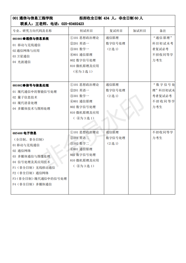 2020年南京邮电大学通信与信息工程学院研究生招生目录
